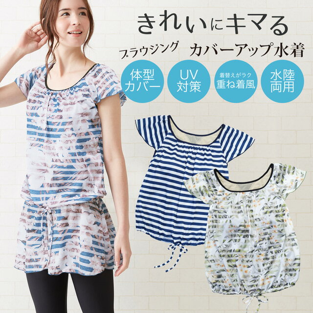ウエストのひもでふんわりブラウジングすれば、体のラインも隠せて、フレンチ袖&すかし柄で女子力アップも! ▼サイズ▼ 9M(バスト83/ヒップ87-95) 11L(バスト86/ヒップ92-100) 13L(バスト89/ヒップ92-100) 15LL(バスト92/ヒップ97-105) ▼カラー▼ ボタニカルボーダー アロハボーダー 杢ネイビーボーダー ▼素材▼ ポリエステル、ポリウレタン 原産国:中国製 UV対策 身体のラインを隠すデザイン水着 ブラウジング カバーアップ水着 上下セット(9M〜15LL) [トップス単品] インナーブラ付き 選べるフィットネス水着 花柄 (半袖タイプ)フィットネス 水着 uvカット 【送料無料】UV対策 スリムに見せる工夫がいっぱい 体型補正デザイン水着 ボーダー柄カバーアップ水着上下セット 【送料無料】UV対策 スリムに見せる工夫がいっぱい♪