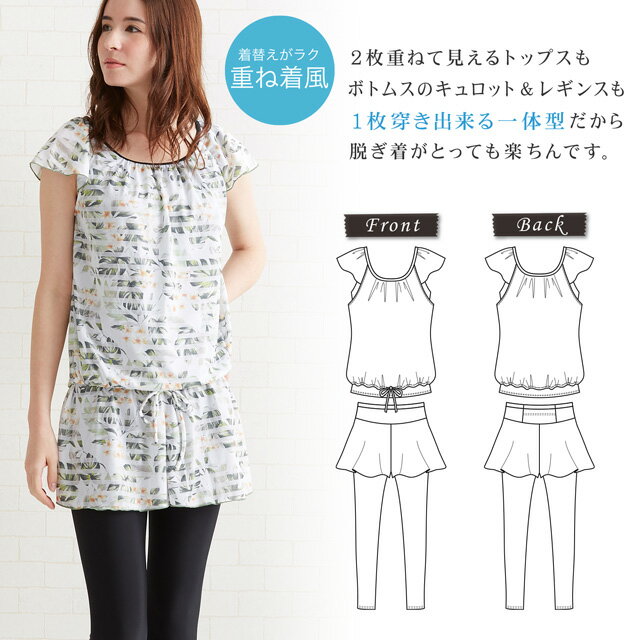 二の腕、お腹まわり、お尻を隠して全身スッキリ! 水陸両用だから、普段着にもフィットネスやウォーキングにも使えます♪