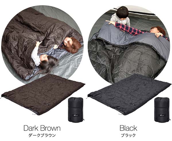 お問合せはこちら ※[店舗管理用 URL]a15772※[品番]【ダークブラウン:a15772】【ブラック:a15773】 お子様との添い寝などにオススメ! ダブルベッド級の大型シュラフ! 2つのシュラフを連結したダブルサイズシュラフ。