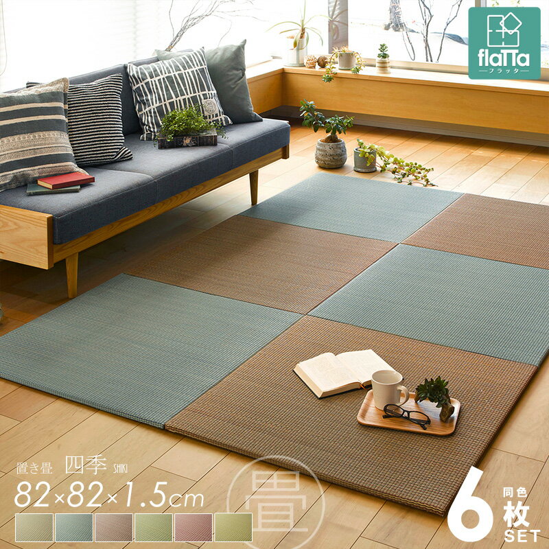 置き畳 6枚セット 四季 82×82cm flatta フラッタ ユニット畳 半畳 縁なし 厚み15mm おしゃれ カラフル たたみ フロア畳 畳マット い草マット 軽量 クッション ひんやり 涼感 和モダン 無地 シンプル ヘリなし ナチュラル グリーン ブラウン ブルー レッド works